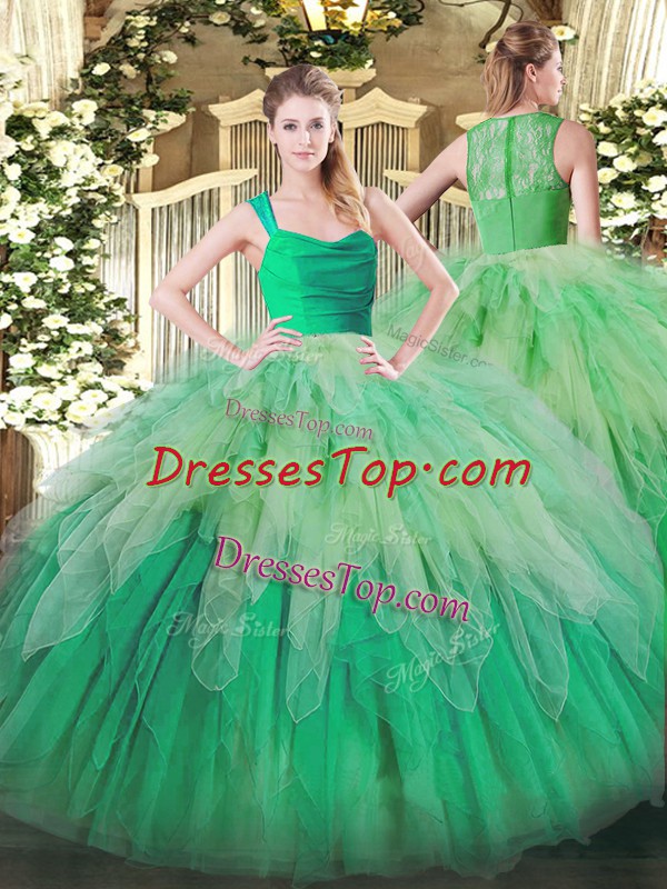 Multi-color Sleeveless Ruffles Floor Length Quinceanera Gown