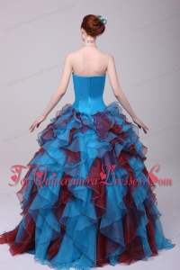 Multi-color Strapless Beaded Decorate Quinceanera Dress with Ruffles