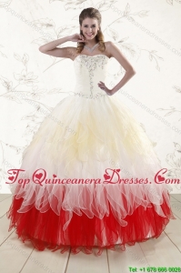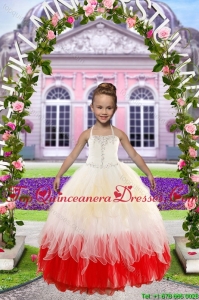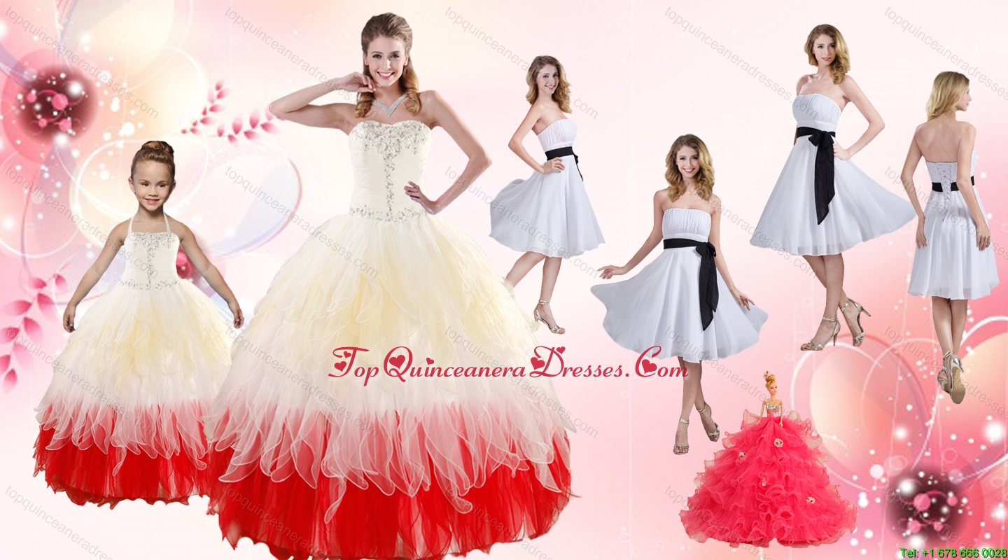 Multi Color Strapless Beading Quinceanera Dress and White Strapless Ruching Prom Dresses and Halter Top Beading Little Girl Dress
