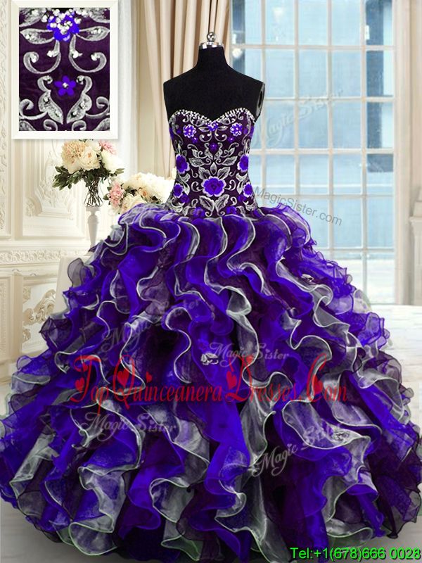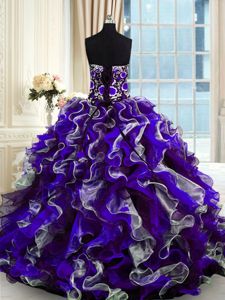 Multi-color Sweet 16 Dress Military Ball and Sweet 16 and Quinceanera and For with Beading and Ruffles Sweetheart Sleeveless Lace Up