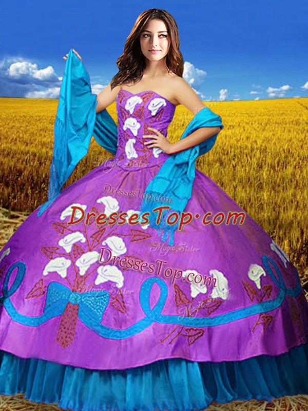 Multi-color Sweet 16 Dress Military Ball and Sweet 16 and Quinceanera with Embroidery Sweetheart Sleeveless Lace Up