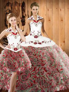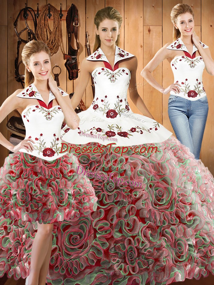 Multi-color Sweet 16 Quinceanera Dress Fabric With Rolling Flowers Sweep Train Sleeveless Embroidery