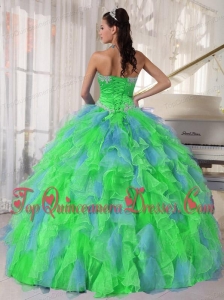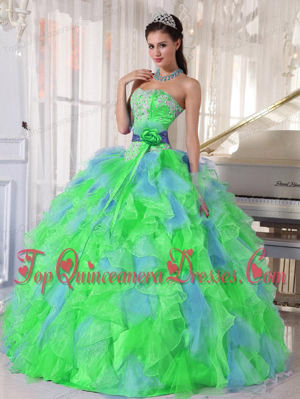 Multi-color Sweetheart Appliques Lovely Quinceanera Dresses with Green Flower