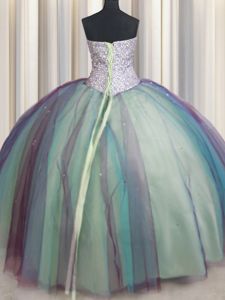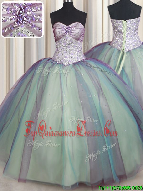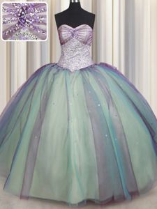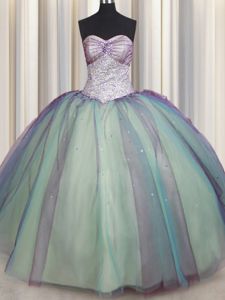 Multi-color Sweetheart Lace Up Beading and Sequins Ball Gown Prom Dress Sleeveless