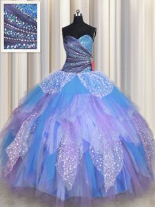 Multi-color Tulle Lace Up 15 Quinceanera Dress Sleeveless Floor Length Beading and Ruching