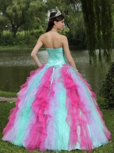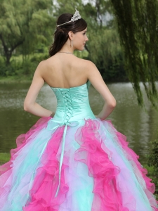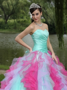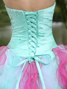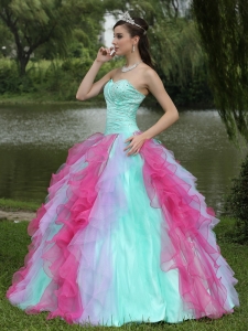 Multi-colored Sweetheart Quincenaera Dress Beaded Ruffle Layers