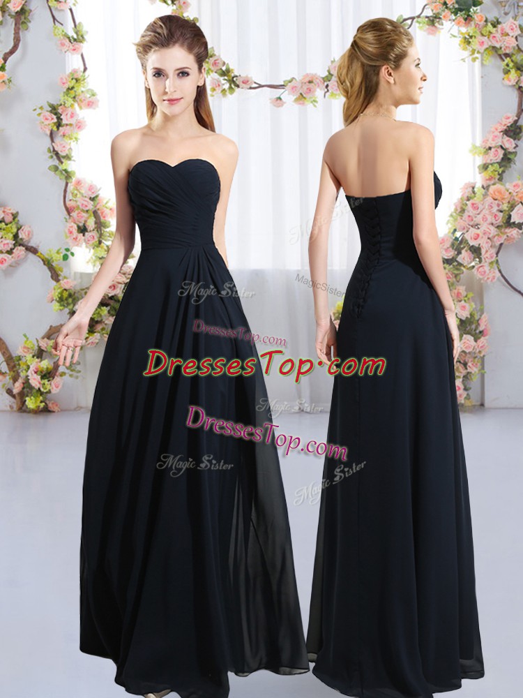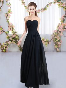 Navy Blue Empire Sweetheart Sleeveless Chiffon Floor Length Zipper Ruching Court Dresses for Sweet 16