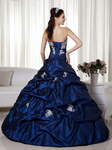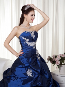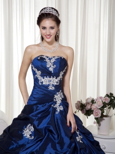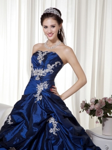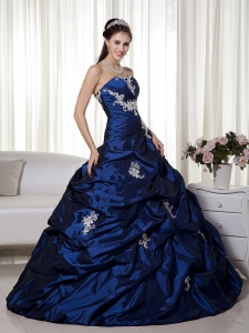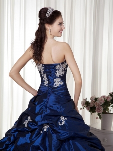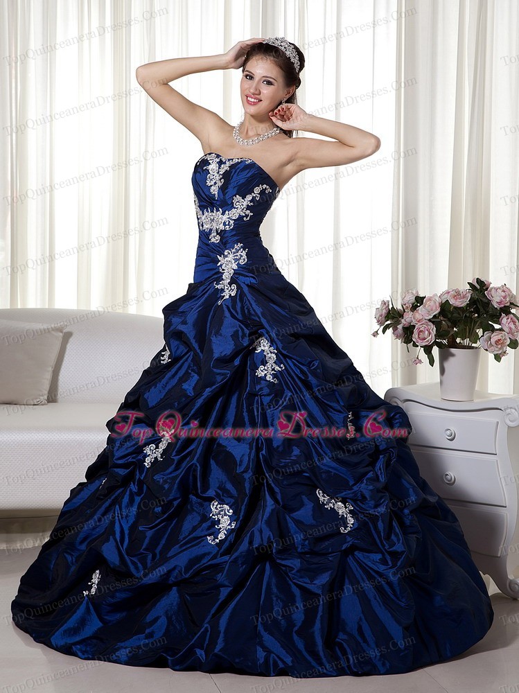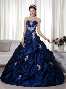 Navy Blue Pick-ups Quinceanera Ball Gowns Strapless Appliques
