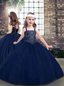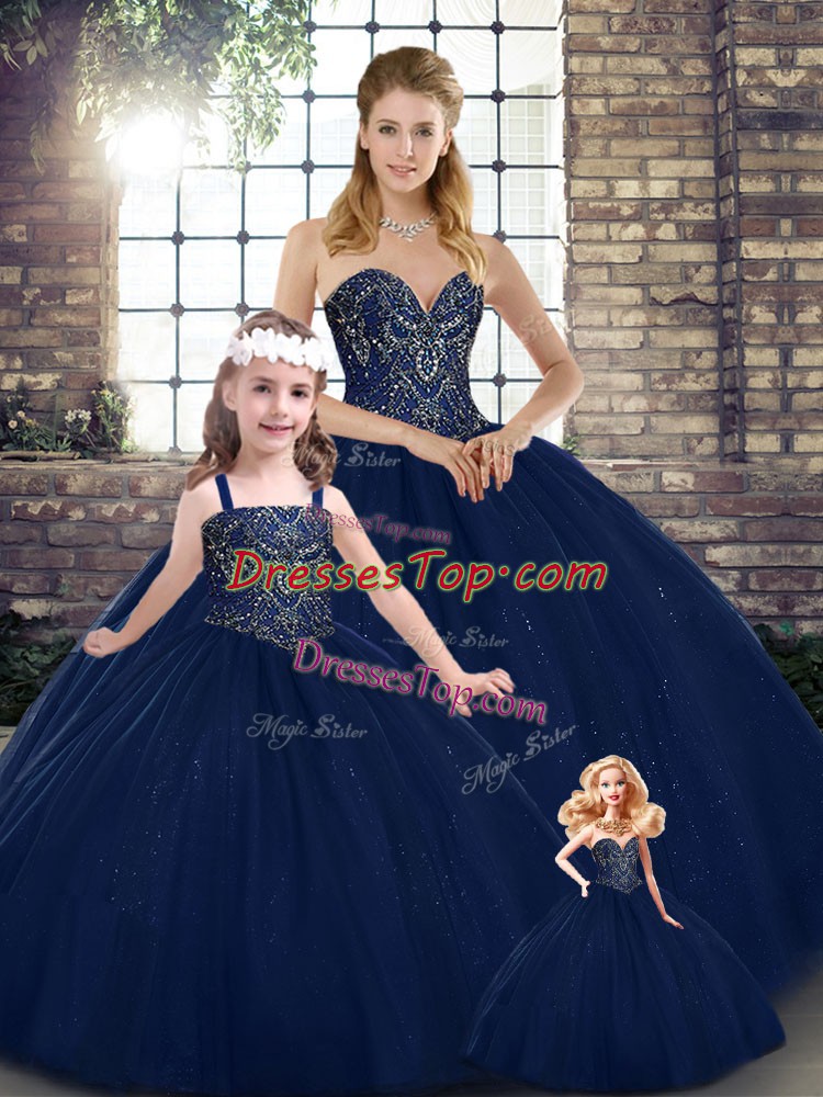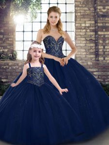 Navy Blue Sleeveless Floor Length Beading Lace Up Sweet 16 Quinceanera Dress