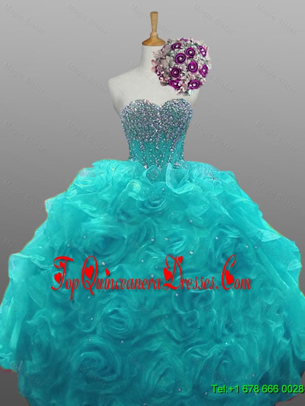New Arrival 2016 Summer Sweetheart Beaded Quinceanera Dresses with Rolling Flowers