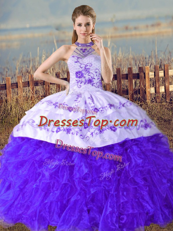 New Arrival Blue Lace Up Vestidos de Quinceanera Embroidery and Ruffles Sleeveless Court Train