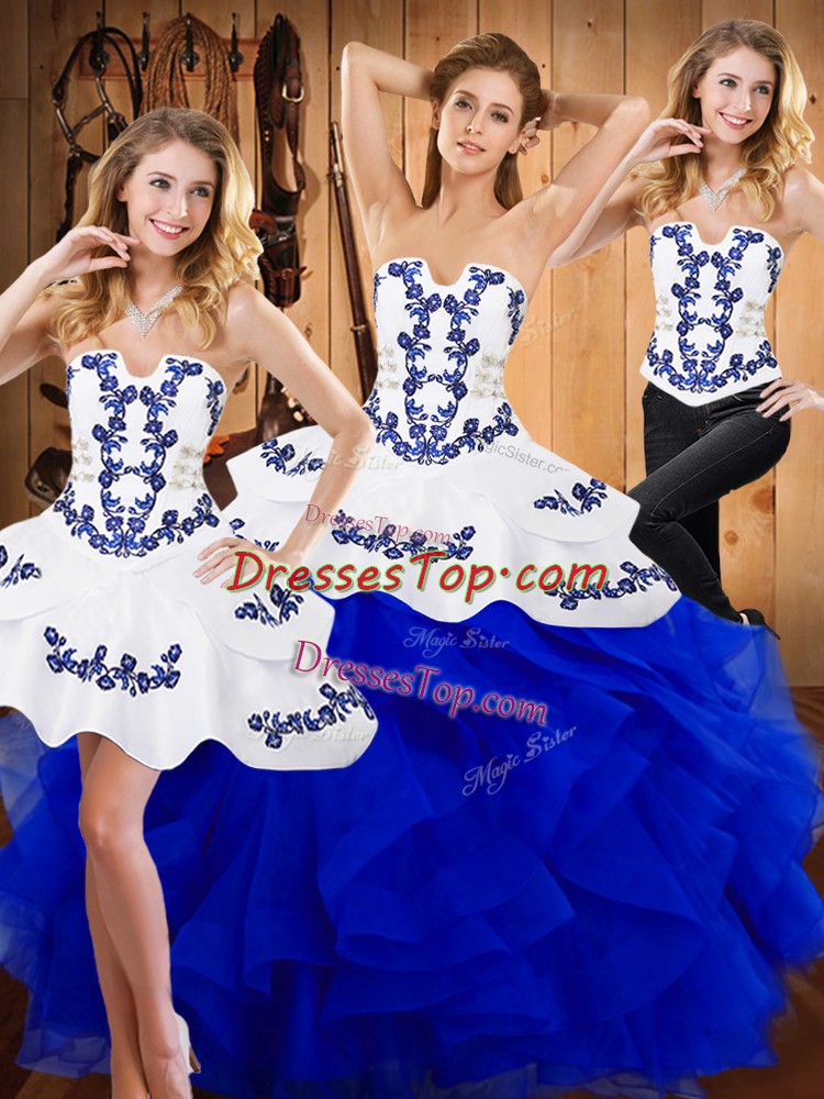 New Arrival Blue Sleeveless Satin and Organza Lace Up Vestidos de Quinceanera for Military Ball and Sweet 16 and Quinceanera
