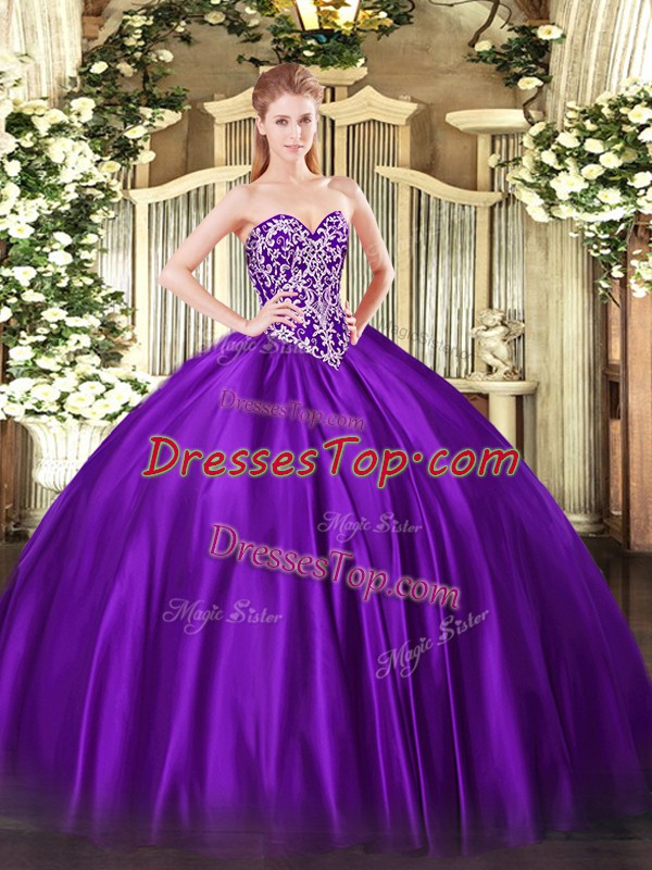 New Arrival Floor Length Lace Up 15th Birthday Dress Purple for Military Ball and Sweet 16 with Beading