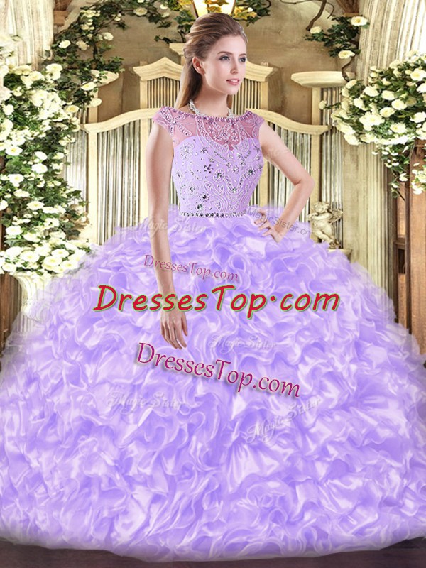 New Arrival Floor Length Zipper Quince Ball Gowns Lavender for Military Ball and Sweet 16 and Quinceanera with Beading and Ruffles