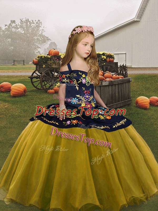 New Arrival Olive Green Ball Gowns Embroidery Little Girls Pageant Dress Wholesale Lace Up Organza Sleeveless Floor Length
