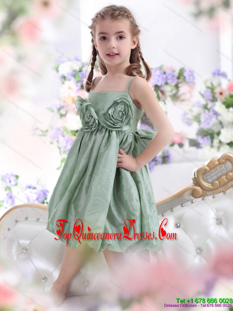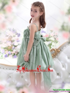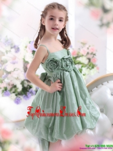 New Arrival Spaghetti Straps Little Girl Pageant Dress with Waistband and Hand Made Flower