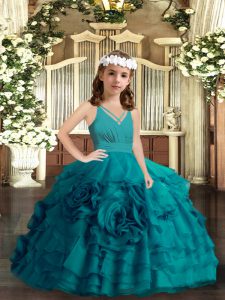 New Arrival Teal Zipper Pageant Gowns For Girls Ruffled Layers and Hand Made Flower Sleeveless Floor Length