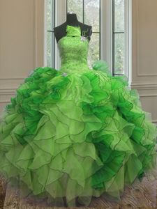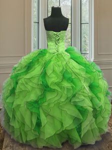 New Arrival Three Piece Red Sleeveless Floor Length Beading and Pick Ups Lace Up 15 Quinceanera Dress