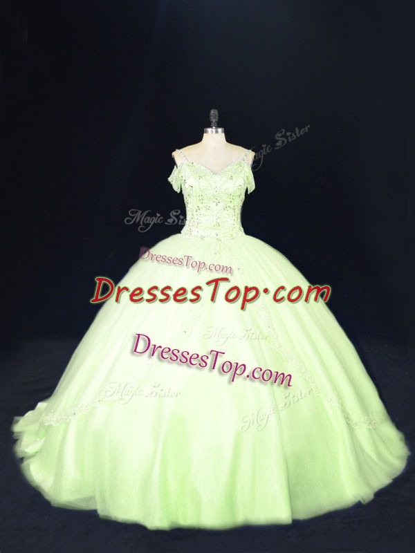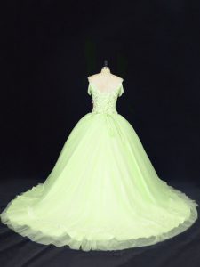 New Arrival Yellow Green 15th Birthday Dress Off The Shoulder Sleeveless Court Train Lace Up