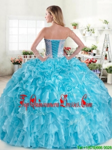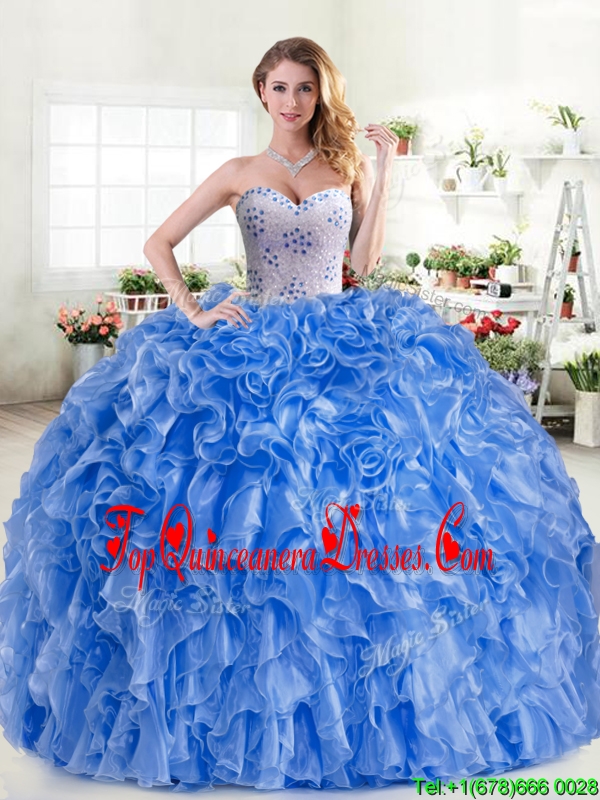 New Arrivals Beaded and Ruffled Blue Quinceanera Dress in Organza