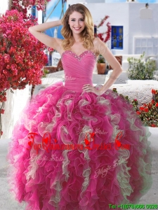 New Arrivals Beaded and Ruffled Quinceanera Gown in Hot Pink and Champagne