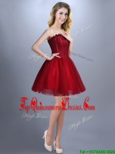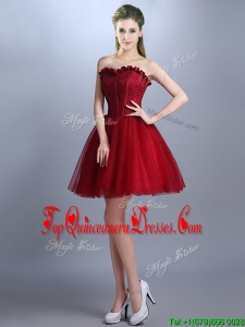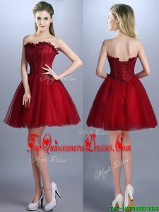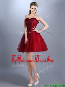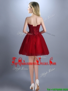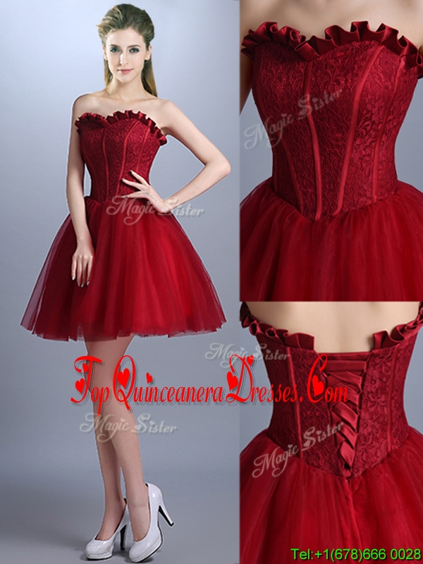 New Arrivals Laced Mini Length Quinceanera Dama Dress in Wine Red