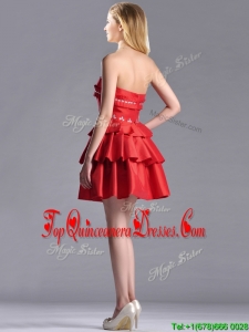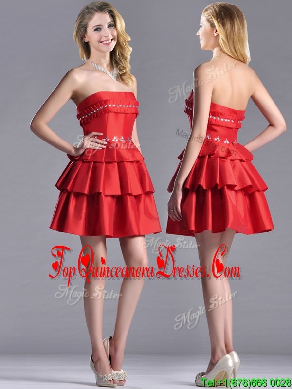 New Arrivals Red Strapless Dama Dress with Ruffled Layers and Beading