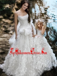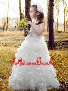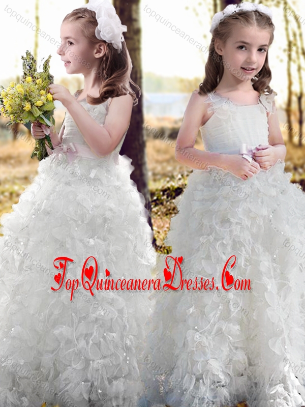 New Arrivals Ruffled and Bowknot White Kid Pageant Dress with Straps