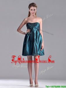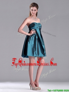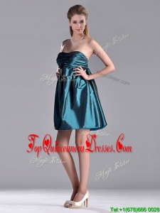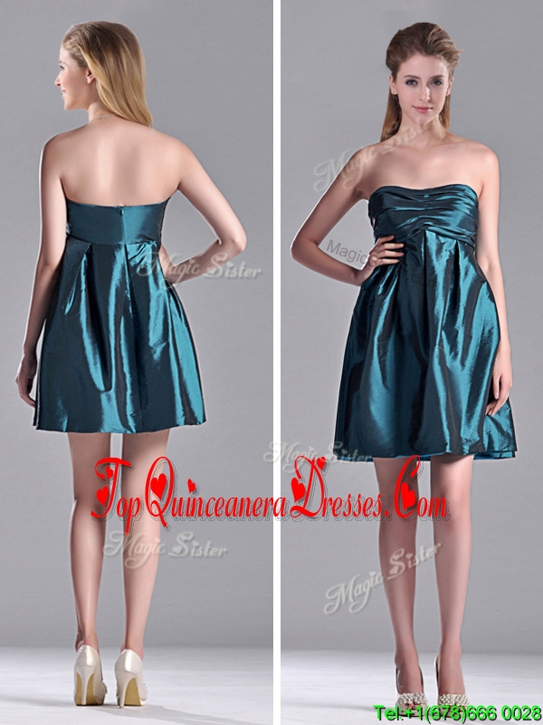 New Arrivals Strapless Ruched Taffeta Short Dama Dress in Teal
