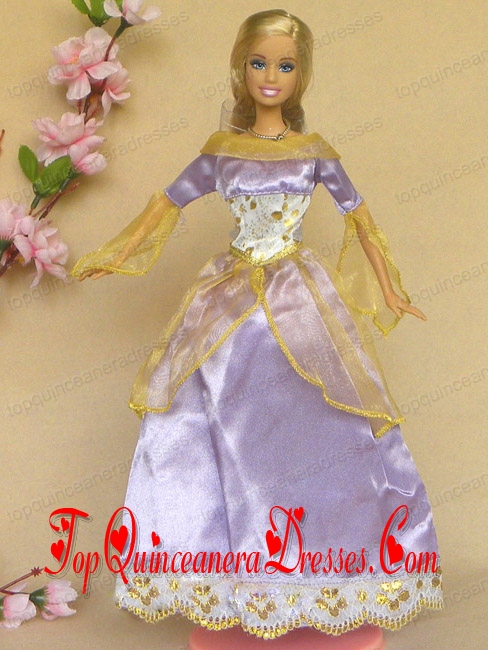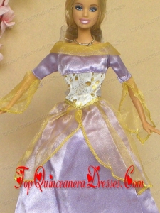 New Beautiful Lilac Long Sleeves Handmade Party Clothes Fashion Dress For Noble Barbie