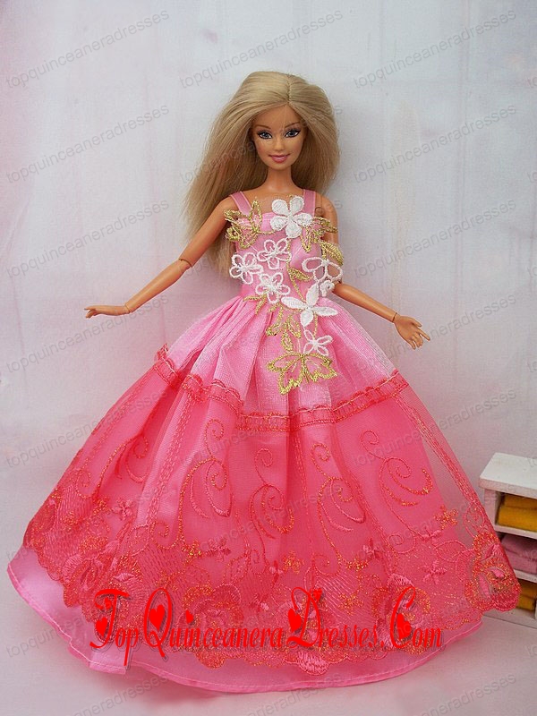 New Beautiful Pink Lace Handmade Party Clothes Fashion Dress for Noble Barbie