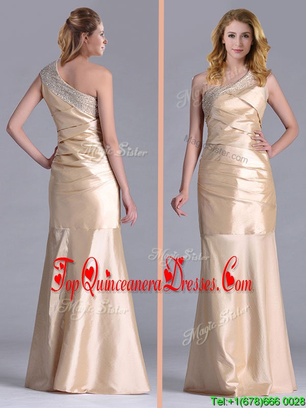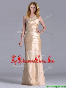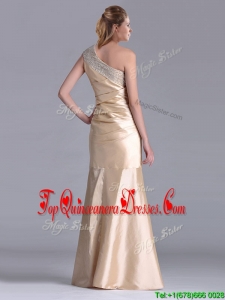 New Column Beaded Decorated One Shoulder Dama Dress in Champagne