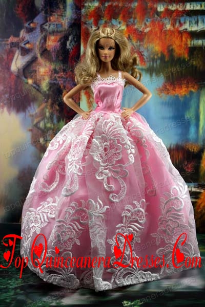 New Embroidery Fashion Princess Pink Dress Gown For Barbie Doll