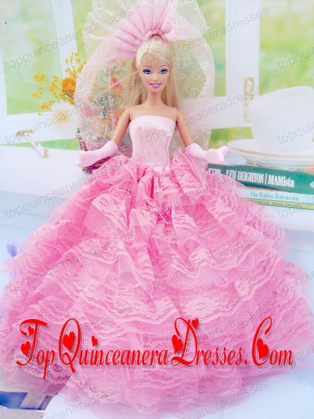 New Fashion Ball Gown Pink Dress Gown for Barbie Doll
