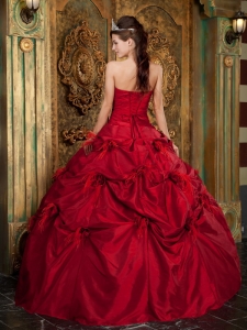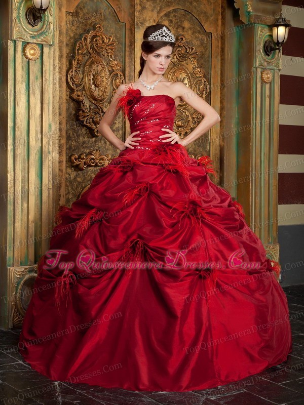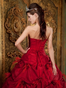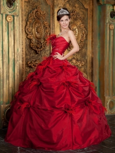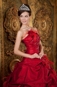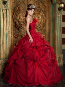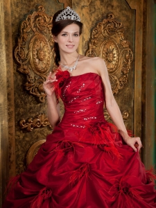 New Red Strapless Hand Made Flowers Quinceanera Dress