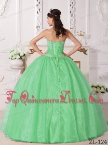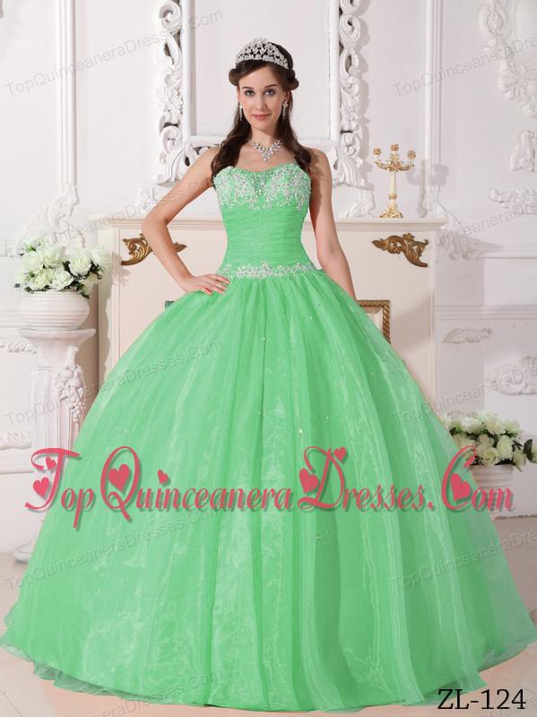 New Style Apple Green Ball Gown Strapless Floor-length Taffeta and Organza Appliques Quinceanera Dress