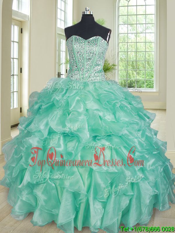 New Style Apple Green Sleeveless Beading and Ruffles Floor Length Quince Ball Gowns