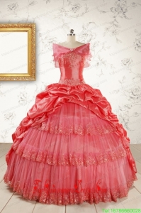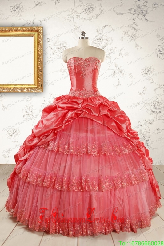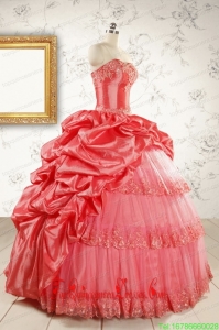 New Style Appliques Quinceanera Dresses in Watermelon
