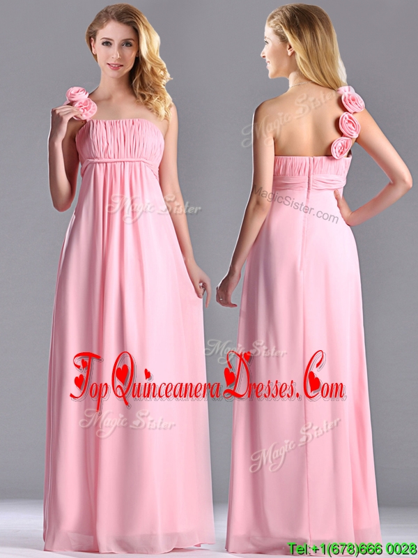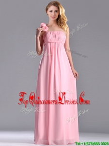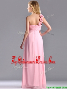 New Style Baby Pink Dama Dress with Handcrafted Flowers Decorated One Shoulder