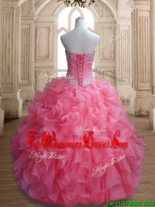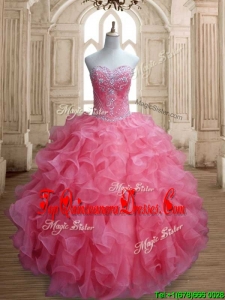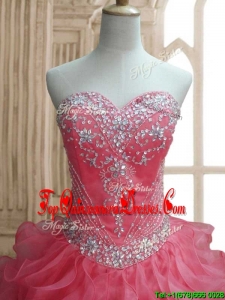 New Style Beaded and Ruffled Quinceanera Dress in Watermelon