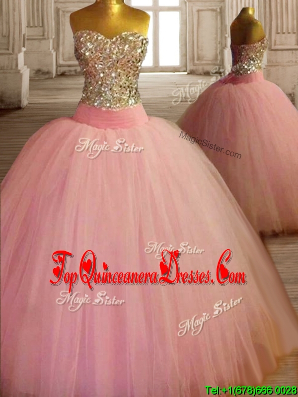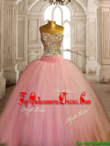 New Style Beaded Bodice Baby Pink Sweet 16 Dress in Tulle