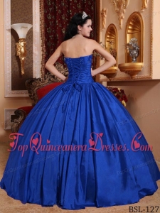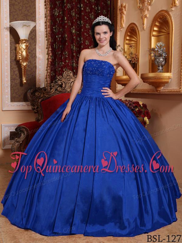 New Style Blue Ball Gown Strapless Floor-length Taffeta Beading Quinceanera Dress
