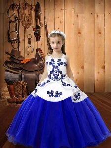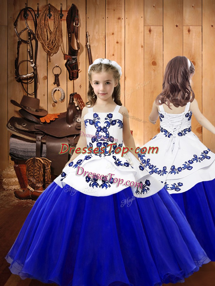 New Style Blue Lace Up Pageant Dress for Teens Embroidery Sleeveless Floor Length
