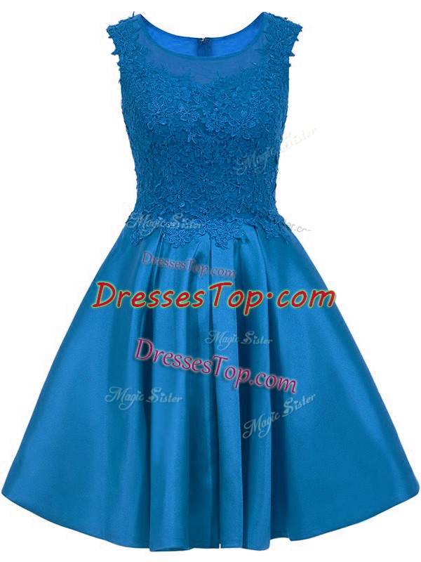 New Style Blue Satin Zipper Scoop Sleeveless Mini Length Quinceanera Court of Honor Dress Lace