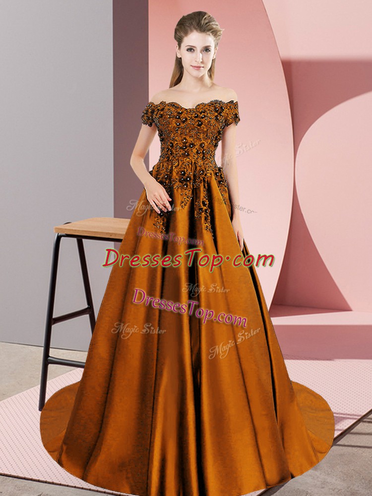 New Style Brown Sleeveless Court Train Lace 15th Birthday Dress