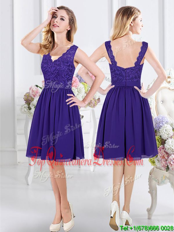 New Style Chiffon Scalloped Sleeveless Zipper Lace Quinceanera Dama Dress in Purple