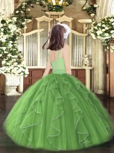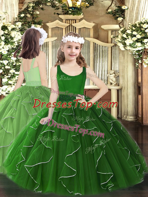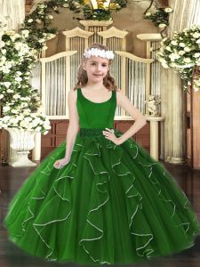 New Style Dark Green Organza Zipper Scoop Sleeveless Floor Length Little Girl Pageant Dress Beading and Ruffles