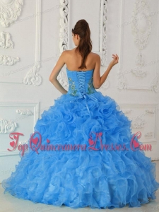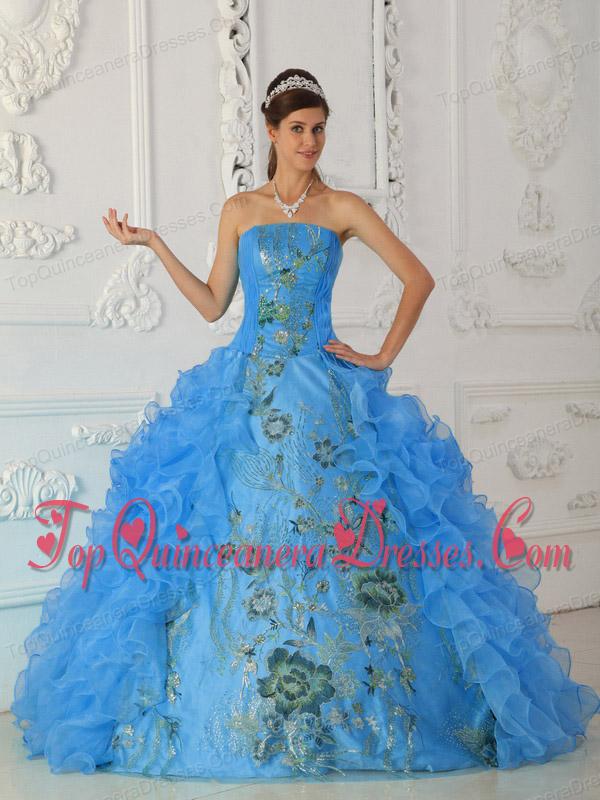 New Style Exquisite Ball Gown Strapless Floor-length Embroidery Aqua Blue Quinceanera Dress