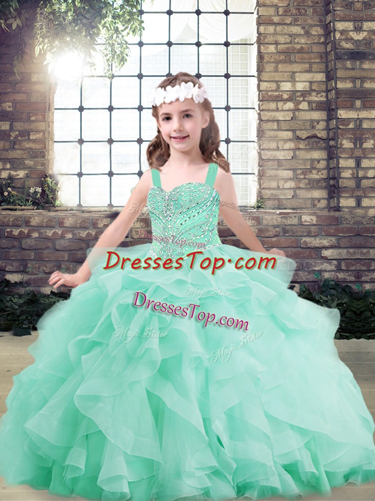 New Style Floor Length Ball Gowns Sleeveless Apple Green Little Girl Pageant Gowns Lace Up