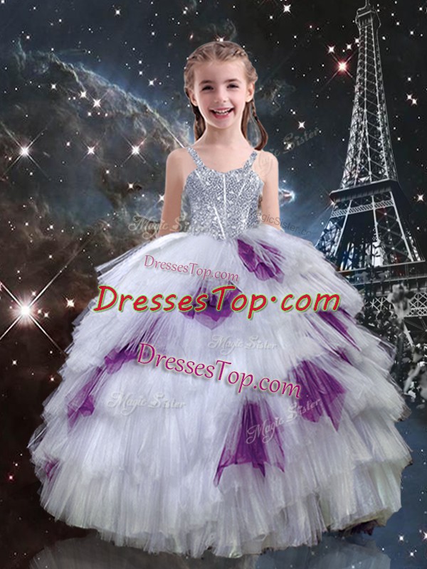 New Style Floor Length Ball Gowns Sleeveless White Little Girl Pageant Gowns Lace Up